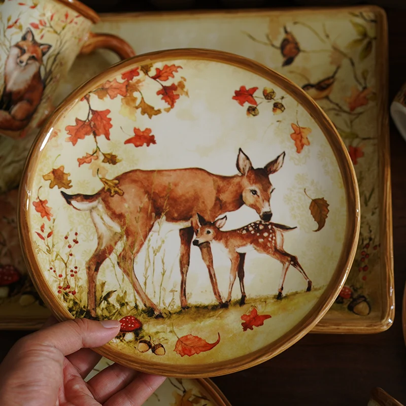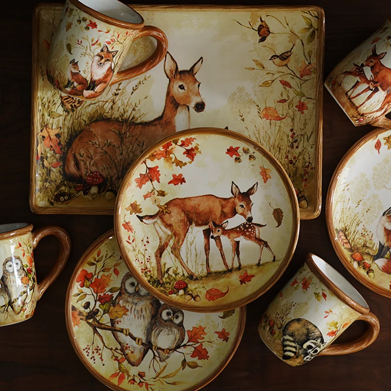 Mori Style Warm Color European Style Underglaze Animal Illustration Style Ceramic Western Food Tableware Set Mug Plates Set - Купить с бесплатной доставкой