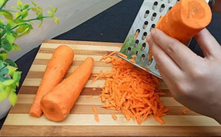 Морковь сваренная — 500 грамм, манка — 3 ст . ложки, яйцо — 2-3 штук, сода — 1 щепотка, сметана — — по вкусу . Морковку предварительно отвариваем, а затем трем ее на средней терке .