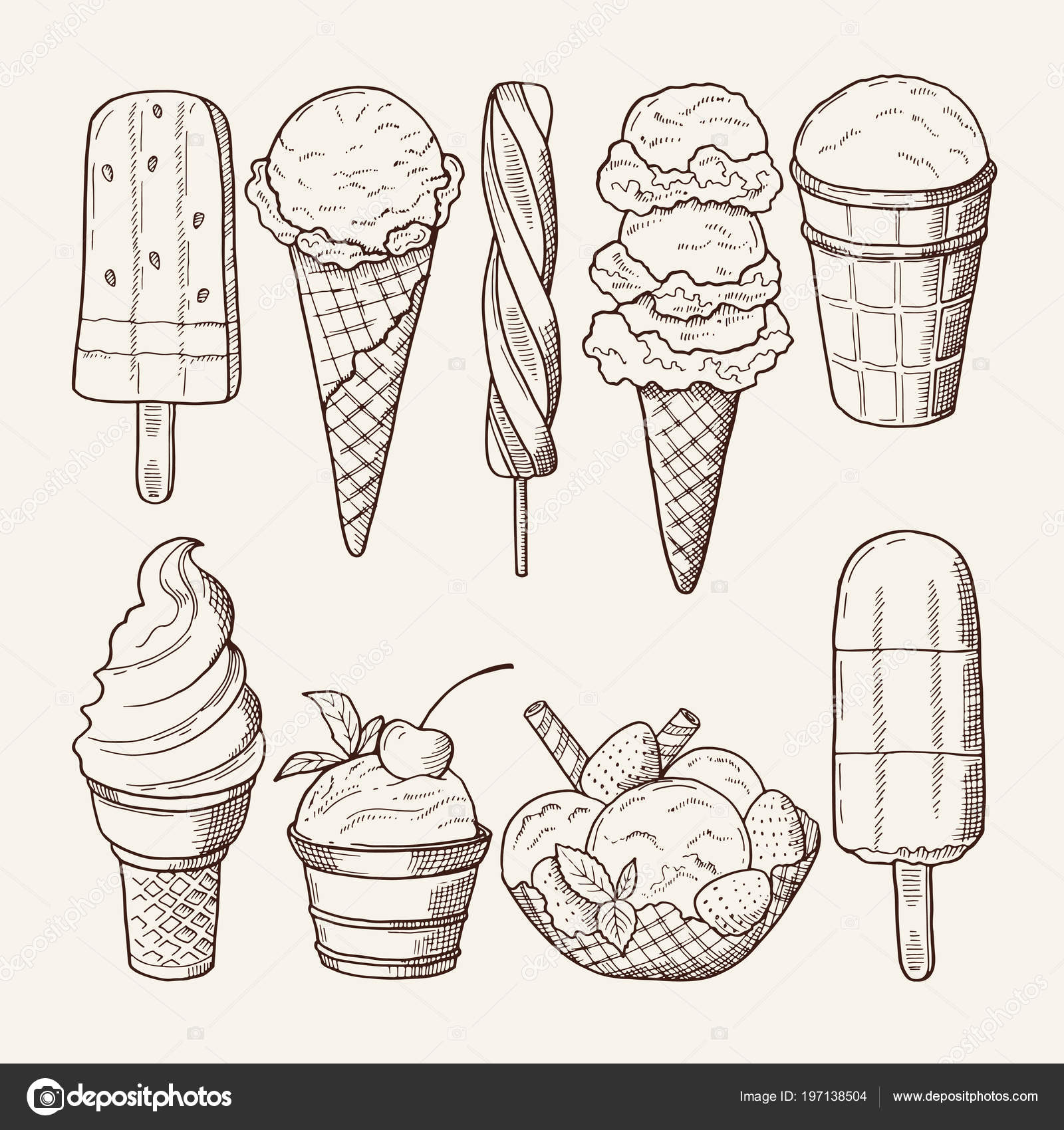 Эскиз мороженое векторы, картинки, клипарт Эскиз мороженое