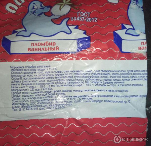 Мороженое пломбир петрохолод