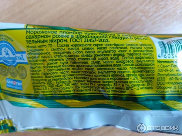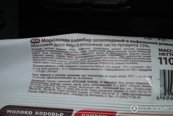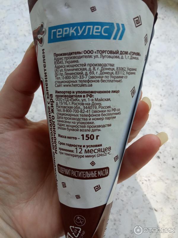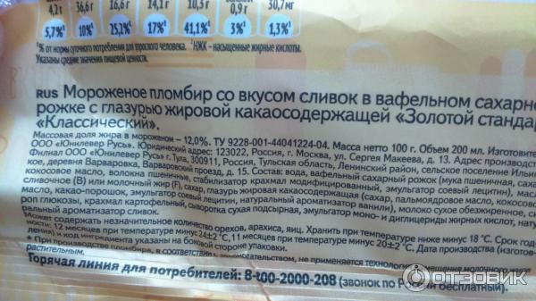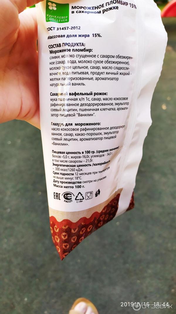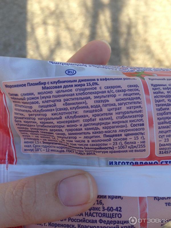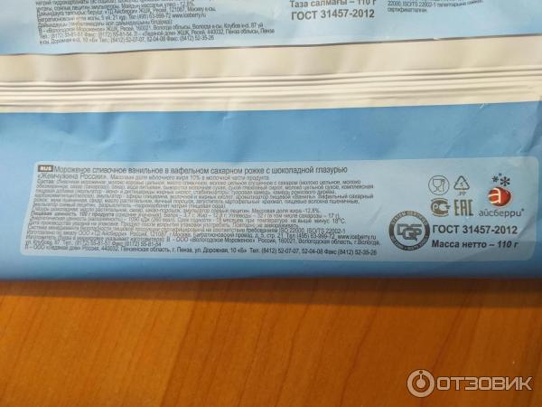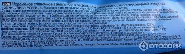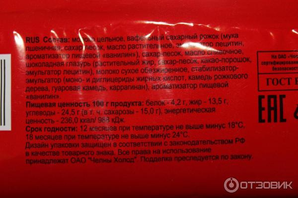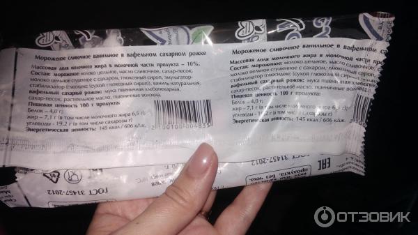 Мороженое рожок состав
