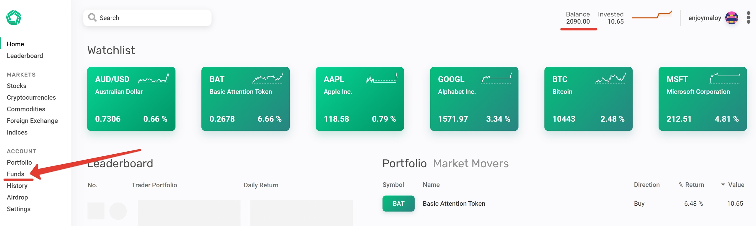 2) После авторизации нам надо чекнуть свой баланс, убедиться что он есть:D И зайти во вкладку Funds