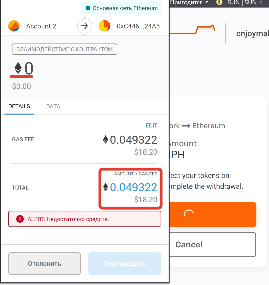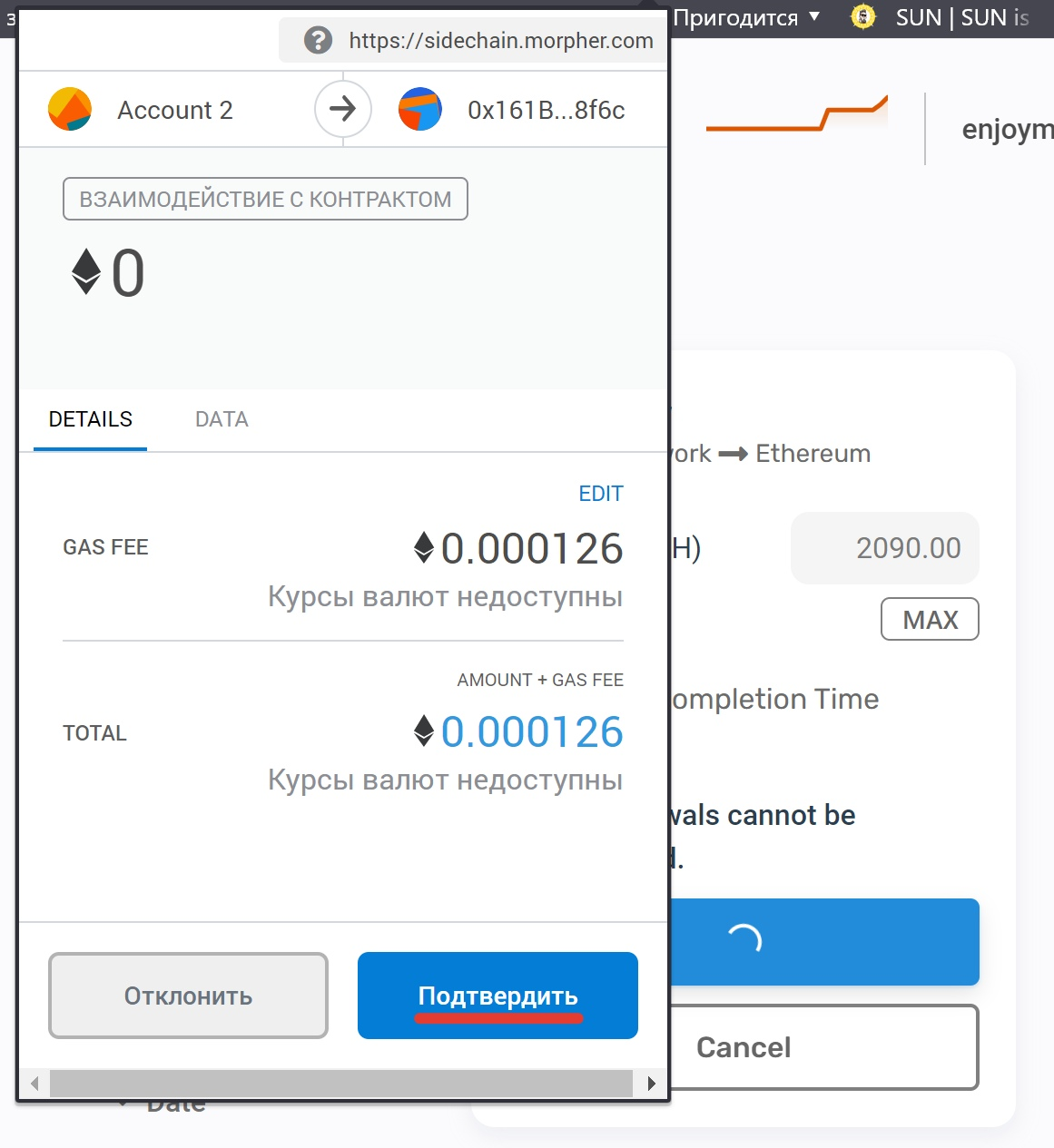 4) Далее подтверждаем транзакцию в MetaMask → Подтвердить