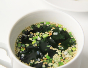 Суп с Дальнего Востока с морской капустой и яйцом . Не смотря на название, это довольно адаптированный вариант восточного супа для славянской кухни, так как содержит в себе более традиционные овощи и специи .