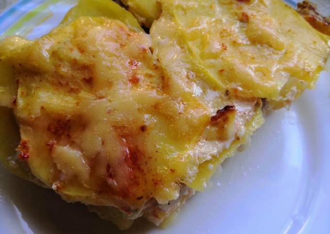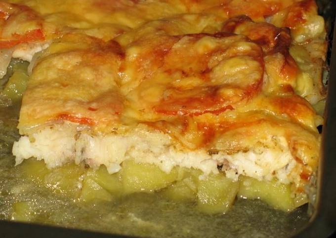 Запеканка с морским языком и картофелем и помидорами