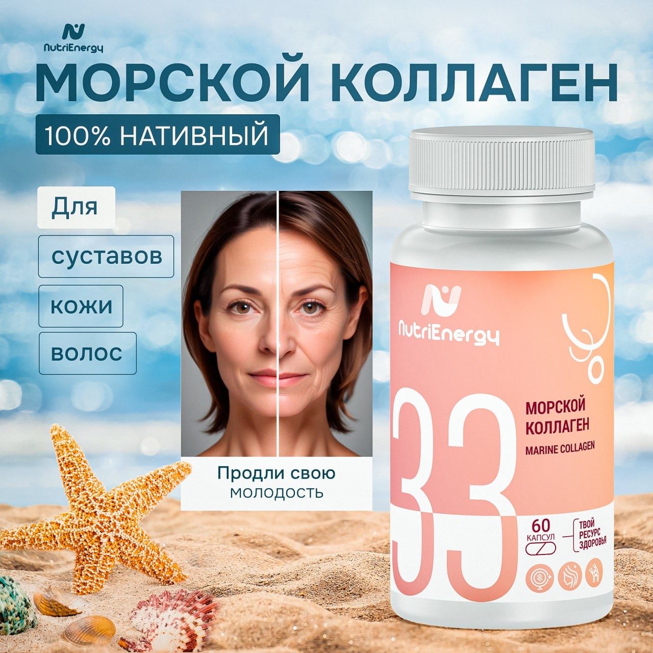 Морской коллаген 60 капсул