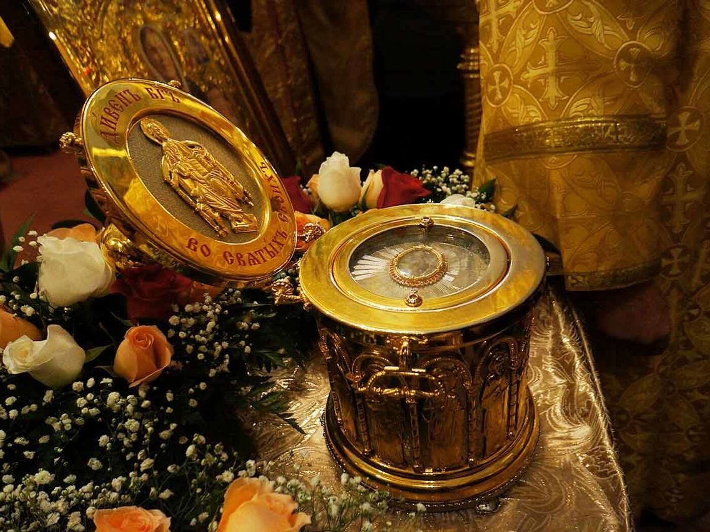 Мощи блаженной Матроны Московской . Ковчег с частицей мощей св . блж . Матроны Московской . В Свято-Троицком Измайловском соборе пребывает частица мощей блаженной Матроны Московской . Каждого . . .