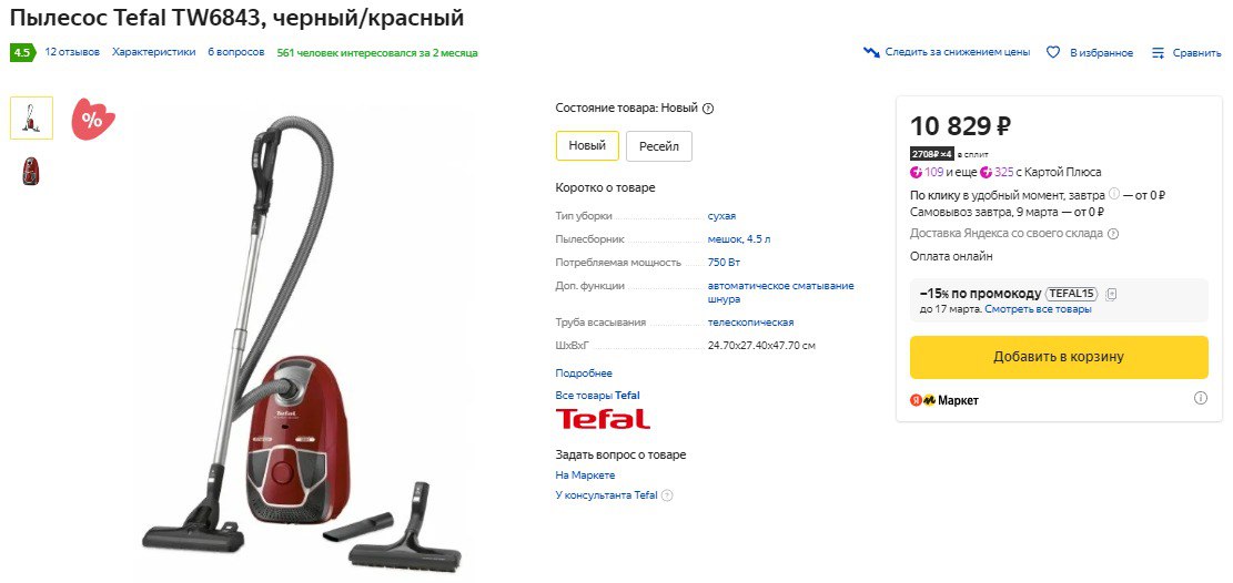 Мощность всасывания пылесоса tefal 79 фото