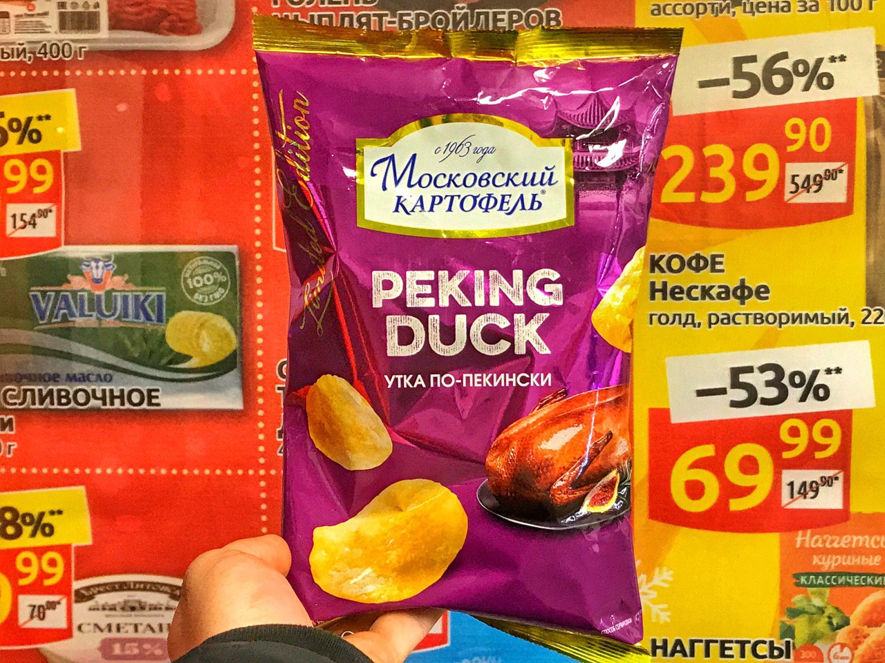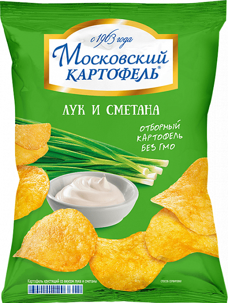 Из России с любовью . . Чипсы с маркировкой "Сделано в России" - это как раз про "Московский картофель - Лук и сметана" . По-русски называется картофель, а по-ненашему просто чипсы . Но так как данные чипсы сделаны в России, то . . .
