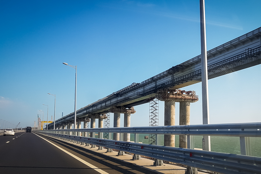 6 . В конце насыпи дорога обрывается перед началом Сооружения 3 - эстакада, выводящая будущую дорогу на мост через Старый Днепр . Здесь пока готовы только опоры . 7 .