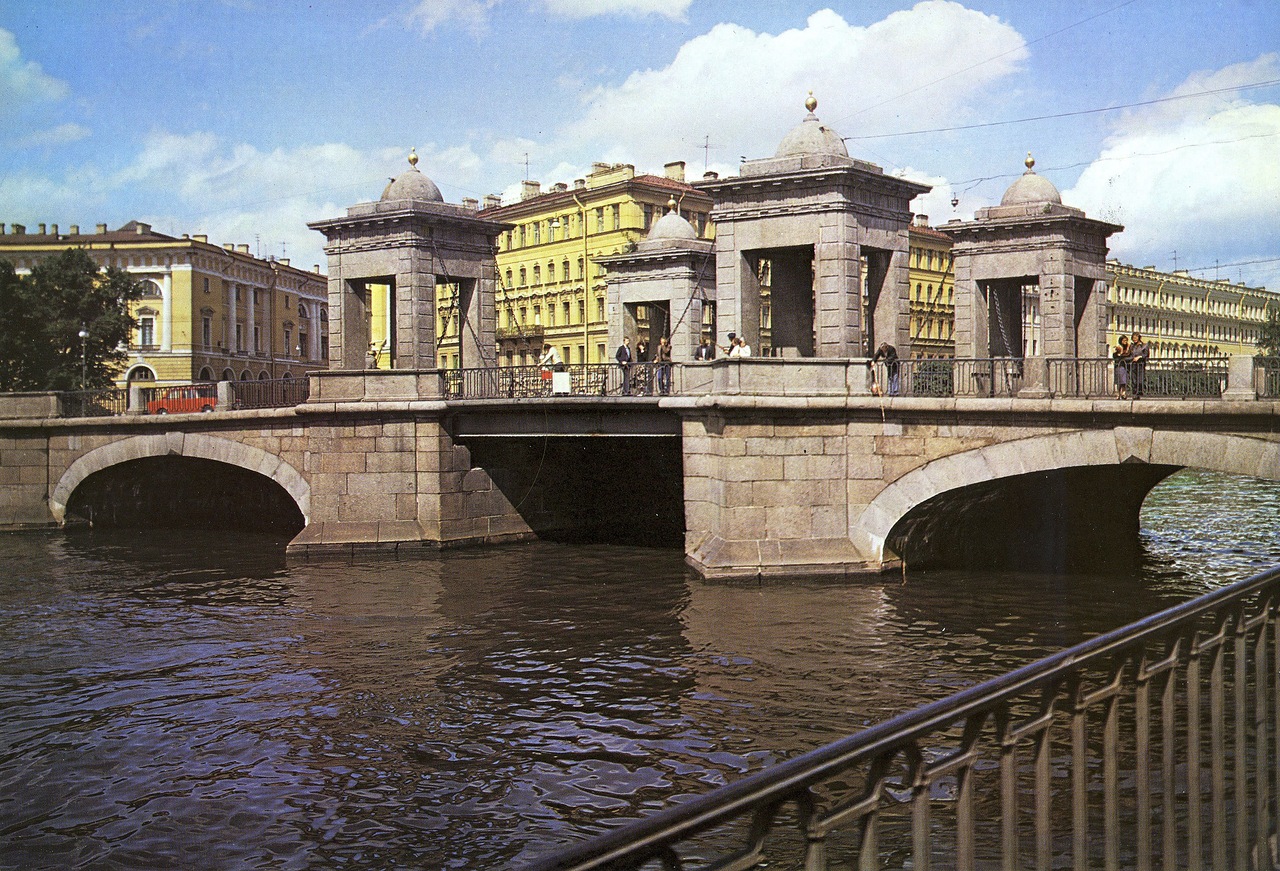 Фото: «Pastvu» Мост Ломоносова 1981 . Благодаря повышению трафика транспорта через мост в середине XIX века, каменные мосты башенного типа ( Симеоновский, Аничков, Семеновский . . .