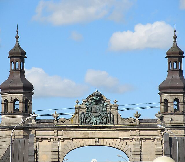 Мост построен в виде арочных ворот с высокими башенками по бокам от арки с барельефом королевы Луизы в окружении двух купидонов и короной сверху (фото сделаны с разницей . . .