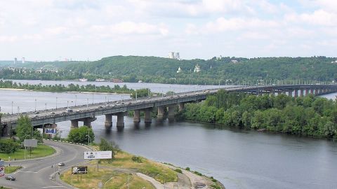Мост Патона в Киеве — балочная конструкция . Пролётные строения представляют собой 264 однотипных блоков длиной 29м . Кроме того, здесь постоянно растягиваются длиннейшие пробки . Автор: Александра Горчинская Фото: Виталий Стельмах .