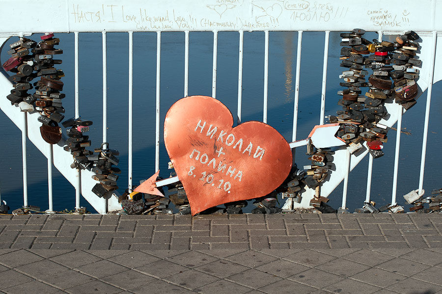 «Мост Поцелуев» был построен приблизительно в 2003 году . Фото на этом мосту получаются чудесные . Небо все время меняет свои оттенки, облака принимают диковинные формы . «Мост Поцелуев» — удивительное место в городе . И здесь действительно царит какая-то . . .