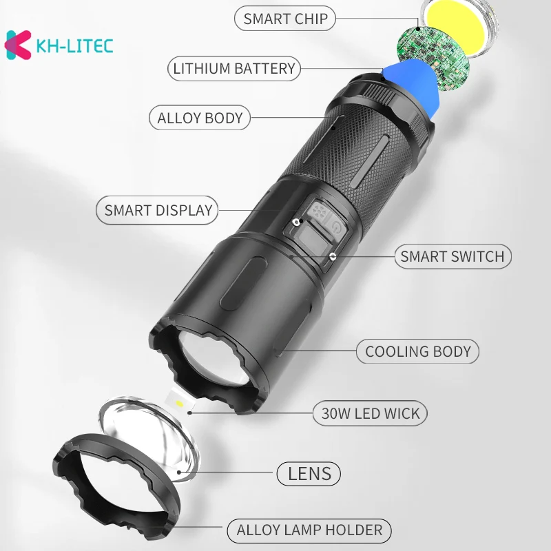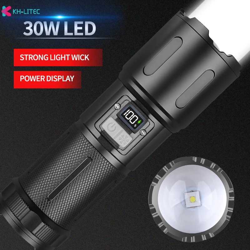 Most Powerful Long Range 30W LED Flashlight High Power Tactical USB Rechargeable Torch Strong Light Hand Lantern for Camping,Hun - Купить с бесплатной доставкой