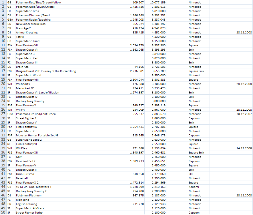 Most sold games