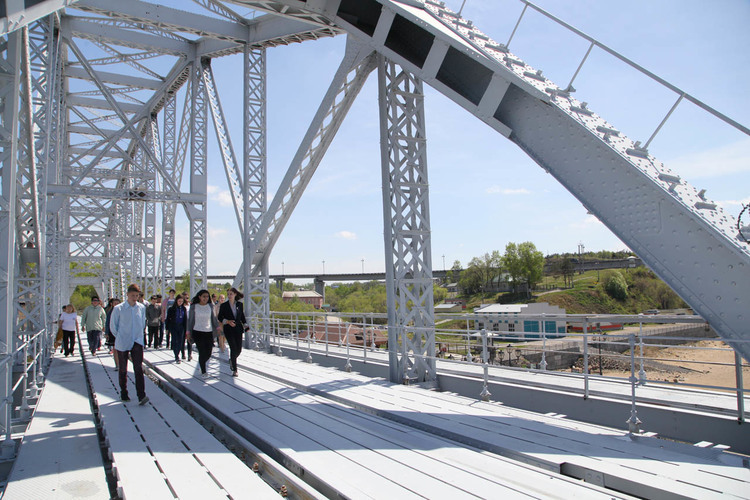 Я живу в Хабаровске и 10 лет работала гидом с японскими туристами . Про мост через Амур японцев обычно интересуют физические данные .