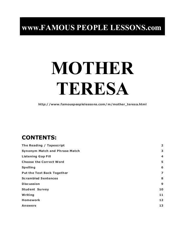 Essay about Mother Teresa - 1438 Words | Bartleby