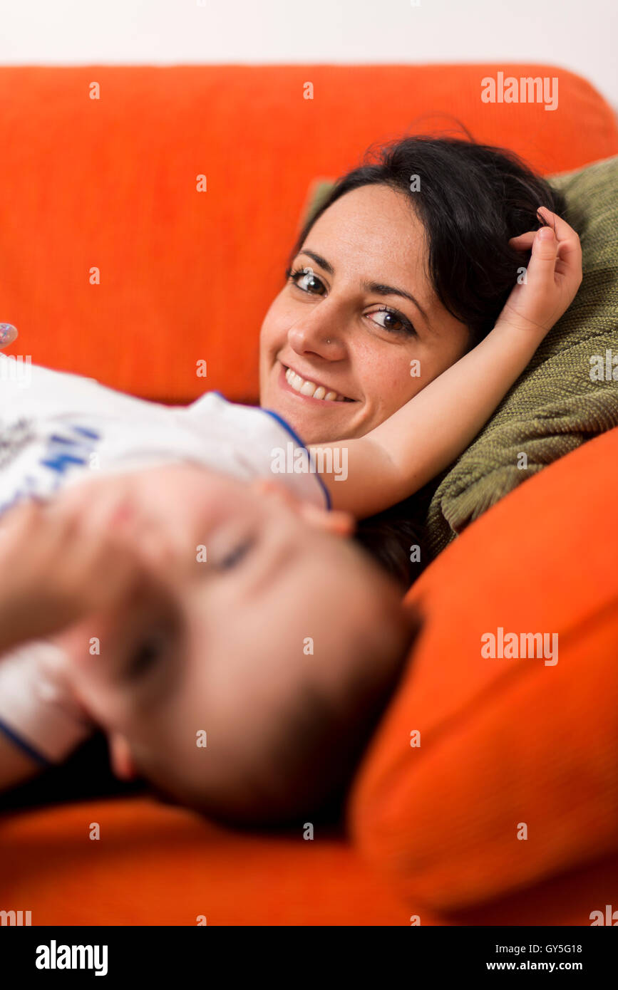 Mother on the sofa now