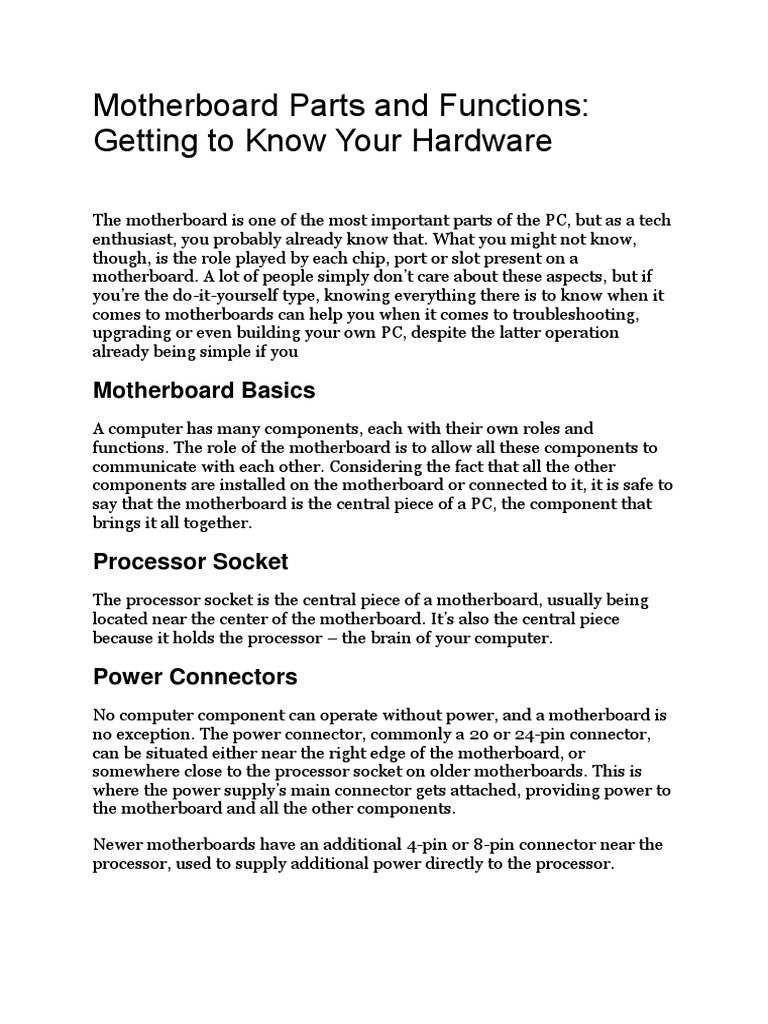 Motherboard And The Functions Explained
