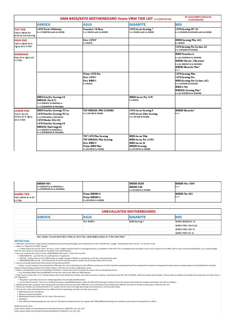 Motherboard VRM Tier List v2 (currently AMD only) Motherboard VRM Tier List v2 (currently AMD only) By Jurrunio December 24, 2019 in CPUs, Motherboards , and Memory . Share . . . Are you taking over tier lists now? Or just the motherboard one? I only take over the board's list .