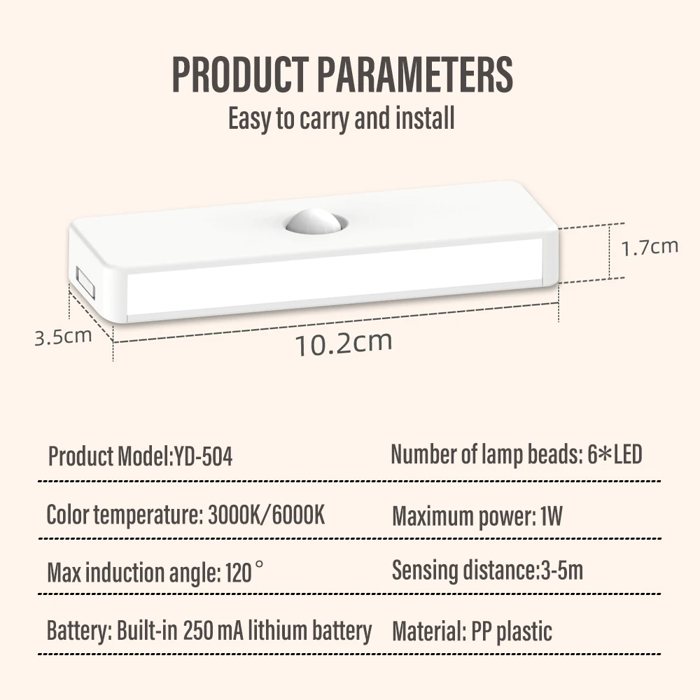 USB Rechargeable Induction Lamps Wireless Ultra thin Night Lights Motion Sensor Tricolor Dimming LED Light Under Cabinet Lights 05 10