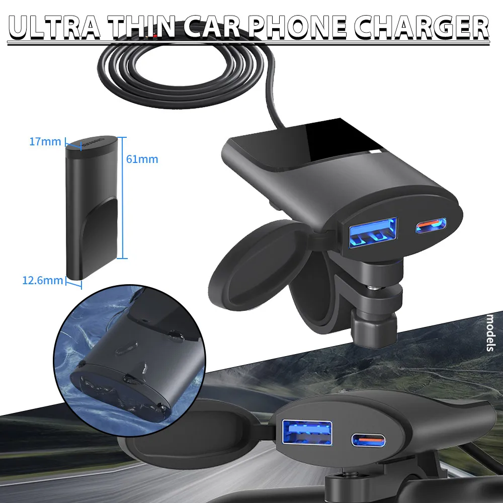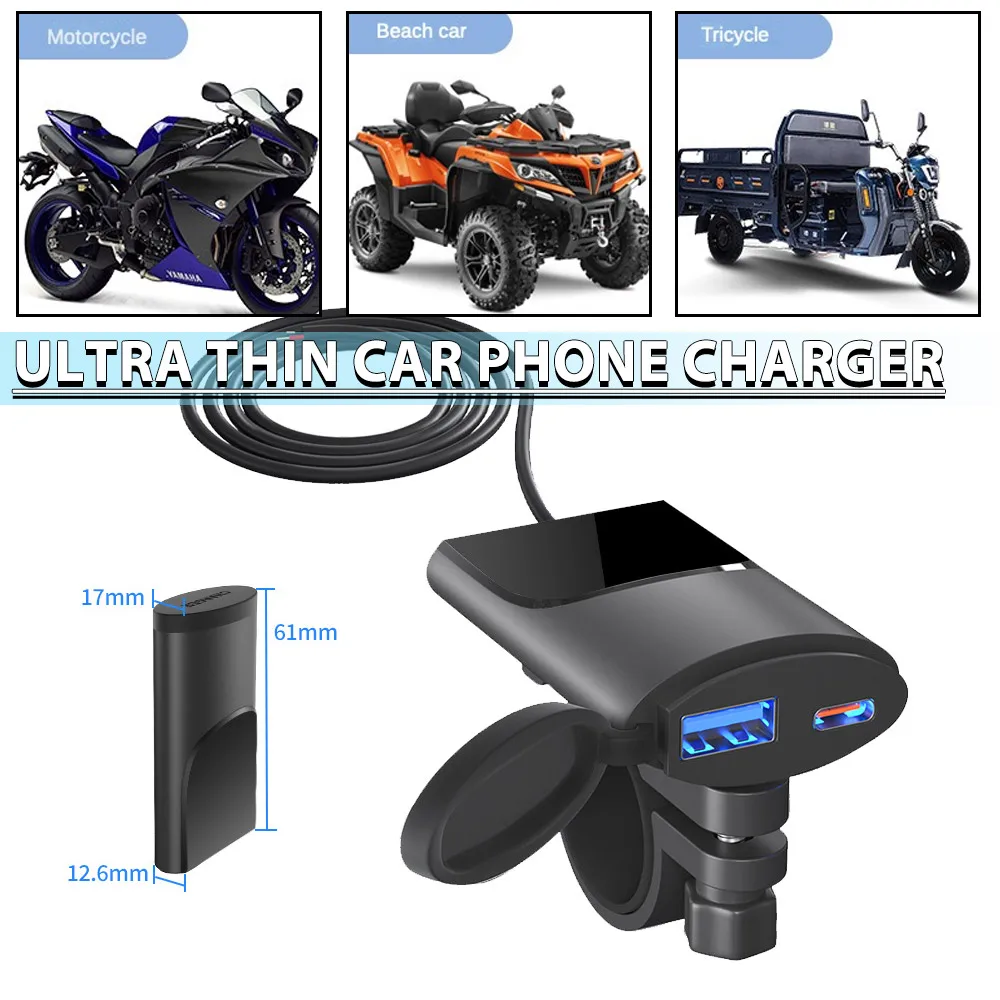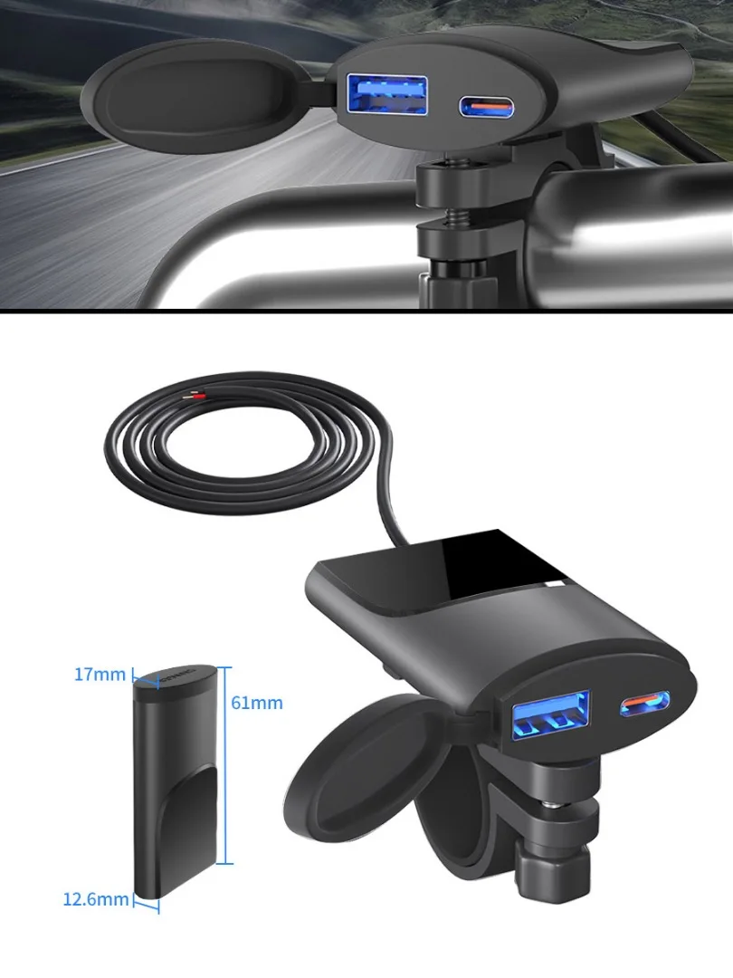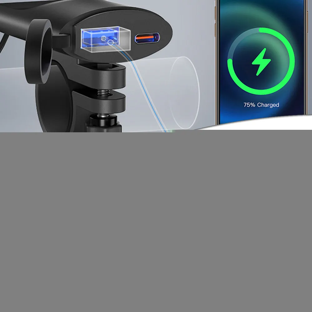 ECfpuBZXqHere you can buy Motorcycle Phone Charger PD+USB QC3.0 Dual USB Fast Charging Adapter Anti-scratch Intelligent IC Technology ABS material with free delivery to your post office.