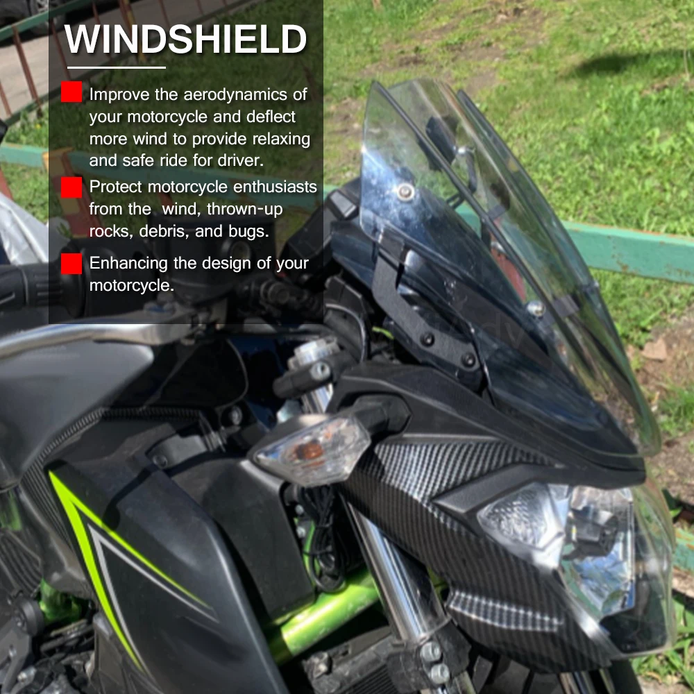 «Motorcycle Windscreen Windshield With Bracket Kits For Kawasaki Z650 2017 2018 2019 Wind Deflector Shield Screen Visor Parabrisa» по лучшей цене на рынке! Всего за 27$ (2565рублей)
