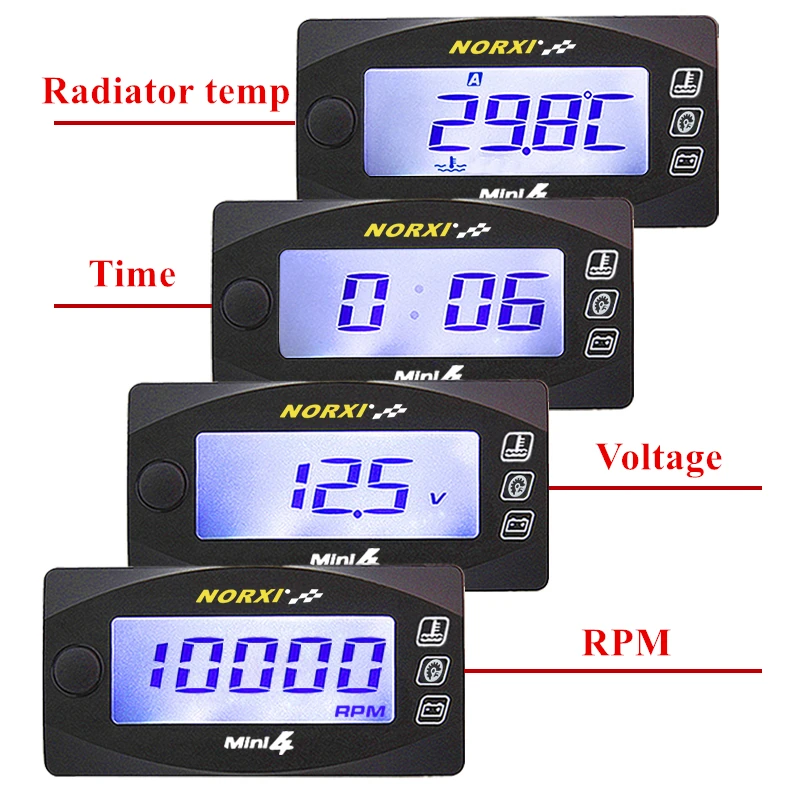 AkQraRpBkHere you can buy Motorcycles Radiator Sensor Voltage Time RPM Tachometer Norxi Mini 4 in 1 LED Digital Display Quad gauge with free delivery to your post office.
