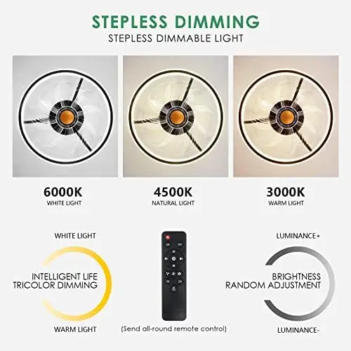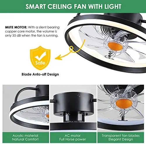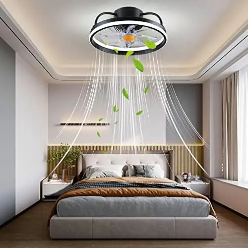 Mount Ceiling Fans with Lights and Remote Control,Modern Enclosed Bladeless,15'' Low Profile Ceiling Fan with Stepless Fan cha - Купить с бесплатной доставкой