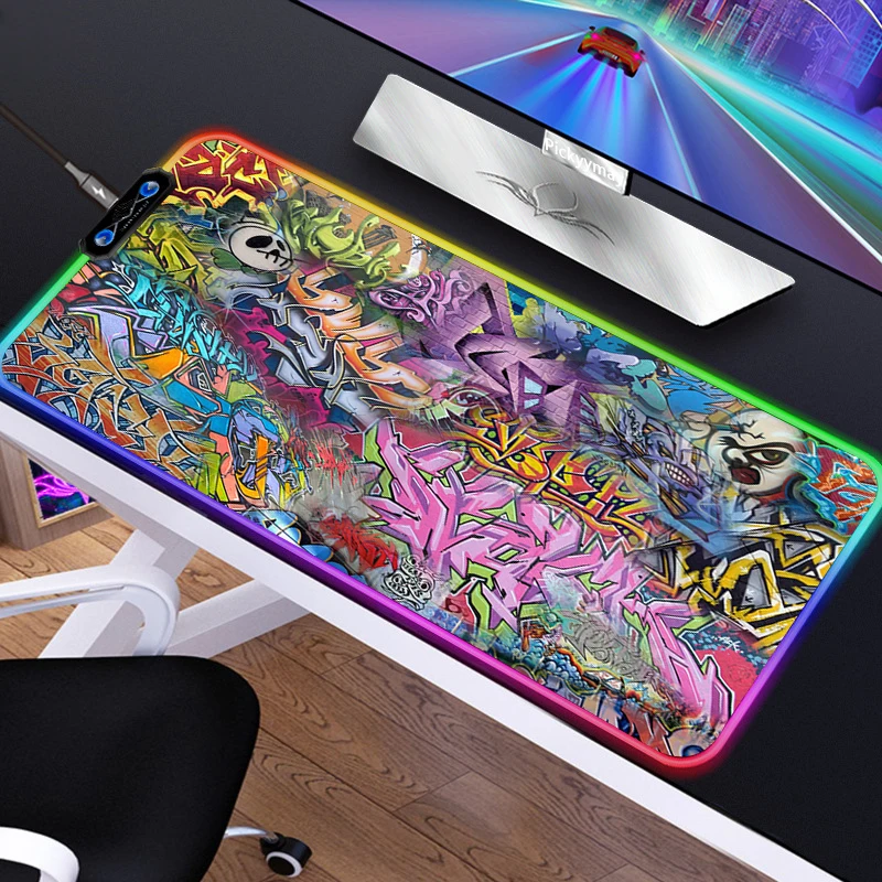 «Mouse Pad RGB Gaming Accessories Computer Large 900x400 Graffiti LED Mousepad Gamer Rubber Carpet With Backlit Play LOL Desk Mat» по лучшей цене на рынке! Всего за 16$ (1520рублей)