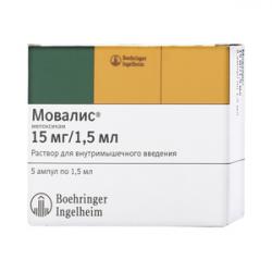 МОВАЛИС р-р д/ин . 15 мг/1,5 мл амп . 1,5 мл №5 Boehringer Ingelheim (Германия) 228 00 МОВАЛИС табл . 15 мг блистер №10 Boehringer Ingelheim (Германия)