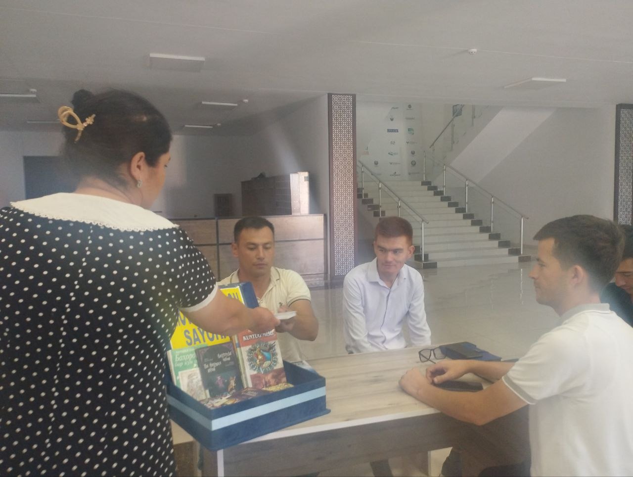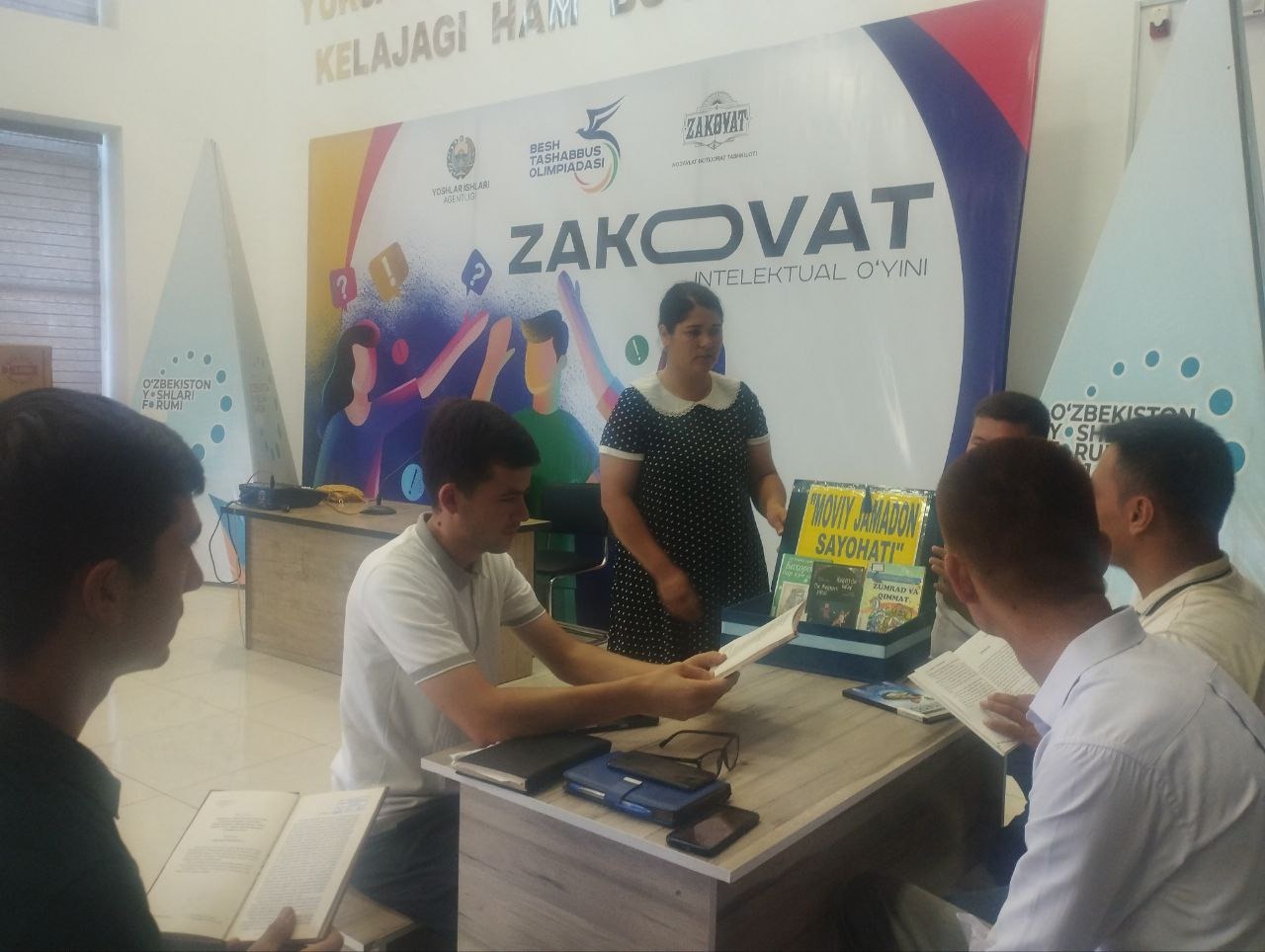 Zomin tuman axborot-kutubxona markazi xodimlari Yoshlar ittifoqi agentligi binosida aholi va yosh kitobxonlarni kitobga bo'lgan mehrini va qiziqishini oshirish maqsadida joriy yilning 26 iyul sanasida "Moviy jamadon sayohati" loyihasini uyushtirdi. Loyihada aholi va yosh kitobxonlar faol qatnashishdi. Kitobxonlariga kutubxona fondidagi adabiyotlar bilan tanishtirildi, kutubxonaga qanday a'zo bo'lish tartib qoidalari haqida tushunchalar berilib o'tildi. Zomin tuman axborot-kutubxona markazi Abonementlar va foydalanuvchilarga xizmat ko'rsatish xizmati mutaxassislari tomonidan kitobxonlarni qiziqtirgan savollariga javoblar berildi, moviy jamodondan joy olgan badiiy kitoblardan ma'lumotlar berildi. Tumanimiz yoshlarini va aholini kutubxonaga tashrif buyurib va adabiyotlardan unumli foydalanishi uchun taklif etildi hamda kutubxonaga yangi a'zo bo'lgan kitobxonlar kutubxona kundaligiga ro'yhatga olindi, kitobxonlar tomonidan so'ralgan kitoblar almashtirilib berildi.
