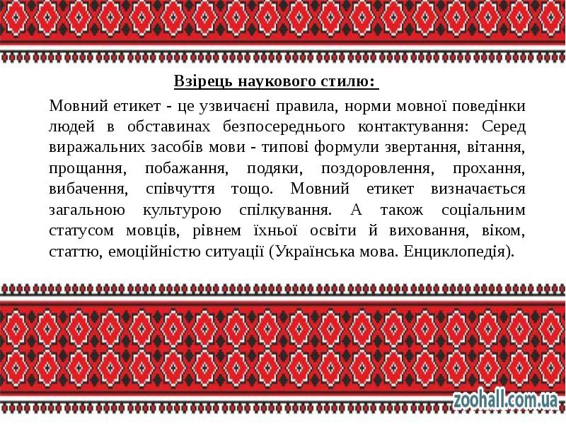 Мовний етикет - невід'ємний елемент культури мовлення - бесплатно скачать реферат по риторике, ораторскому мастерству на украинском языке, банк рефератов на тему Риторика, ораторское мастерство на Parta .ua