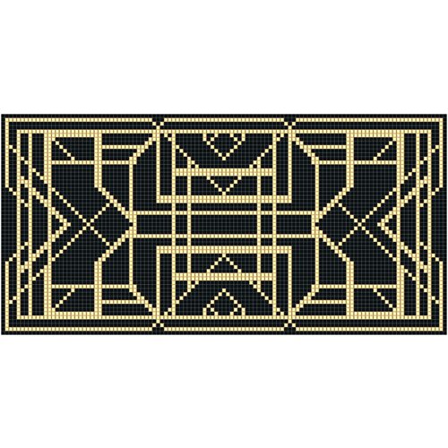 Art Deco cam mozaik panel, yaldızlı mozaik unsurlar içerir. 626*1260 mm ölçülerindeki panel tam bir bölünmez üründür. Farklı tür ve tonlardaki mozaiklerden montaj yapmak mümkündür. Yüksek neme sahip odalar (banyo, yüzme havuzu, hamam) dahil olmak üzere çeşitli odalarda duvar ve zeminlerin bitirilmesi için uygundur. Müşterinin ölçülerine göre montajı ve bireysel proje oluşturulması mümkündür. Cam mozaik çevre dostu, neme ve yangına dayanıklı bir malzemedir. Mozaik panellerin minimum servis ömrü 25 yıl veya daha fazladır.