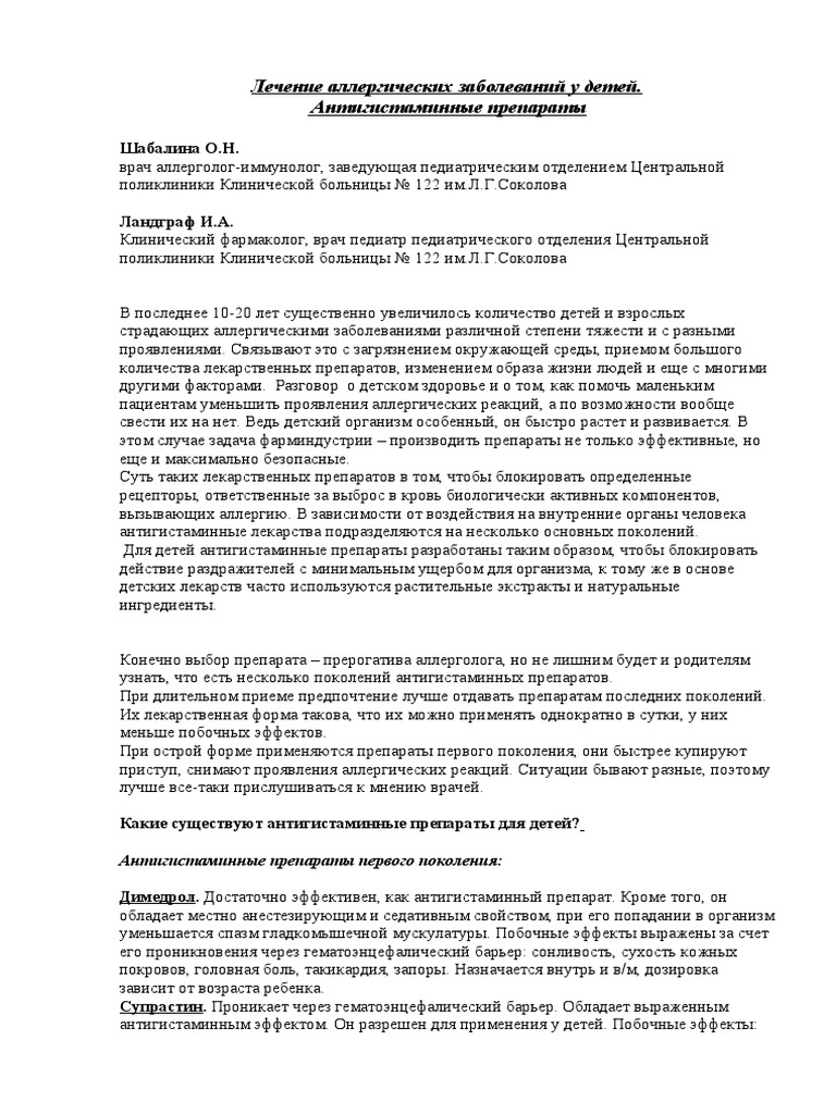 скажите пожалуйста можно ли детям принимать димедрол мам его назначили попринимать после . . .