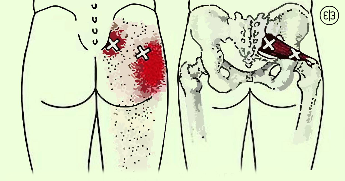 Также распространенной причиной возникновения ишиаса является спазм расположенной в ягодице грушевидной мышцы. Поскольку седалищный нерв проходит сквозь нее, повышение ее тонуса приводит к растяжению и раздражению нервного волокна, что немедленно отзывается сильной болью.