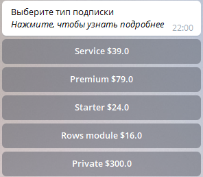 На момент написания руководства, имеется 5 типов подписки(скриншот выше).