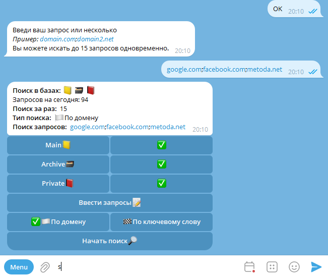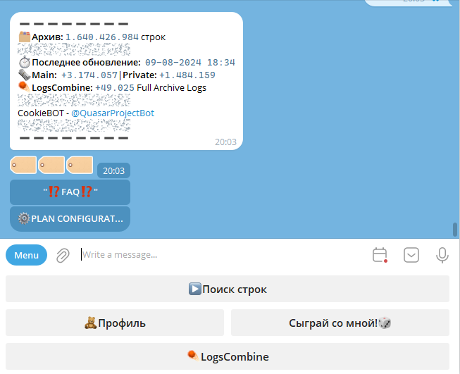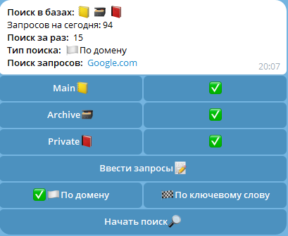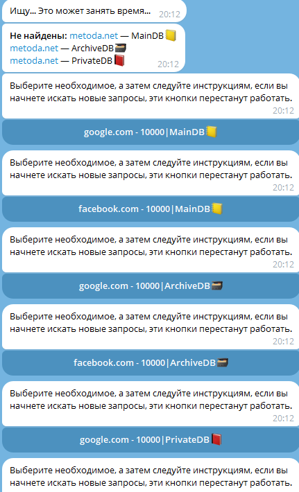 А уники? Ни для кого не секрет, что мы получаем данные с логов, которые могли попасть в руки кому угодно, ведь траферов сейчас уйма и поставщики не всегда честно отдают уникальный материал, но это не так важно, ведь в основном наш бот используется для приватных запросов, но есть и пользователи зарабатывающие на паблик запросах.