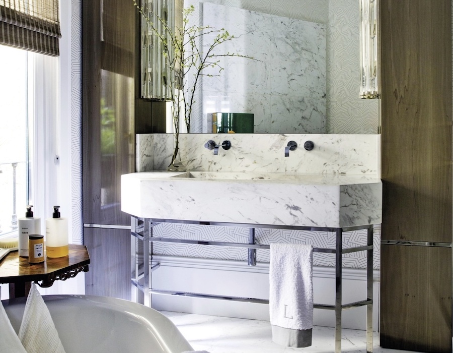 Мраморная ванная комната, утонченный интерьер с фото