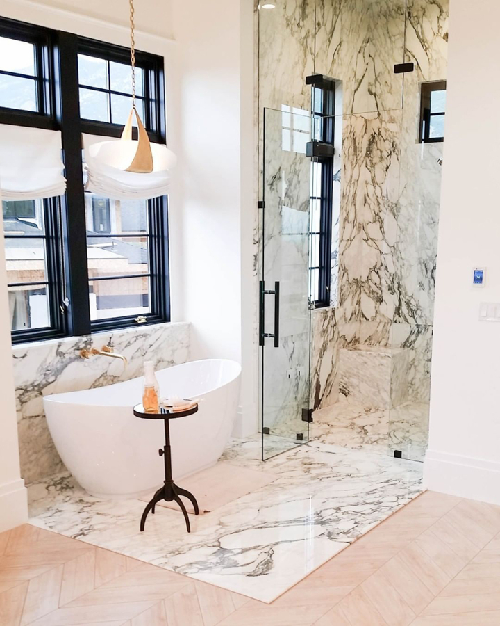 Мраморные стены в ванной (69 фото)
