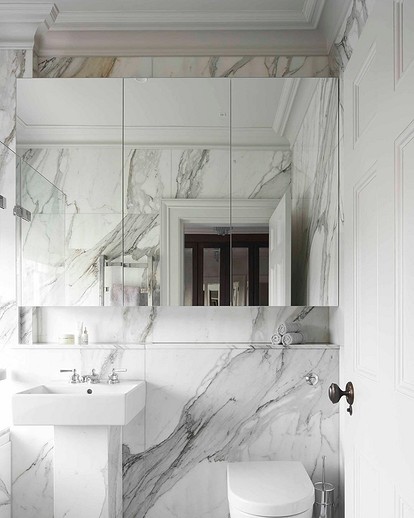Отделка ванной комнаты под мрамор (57 фото)