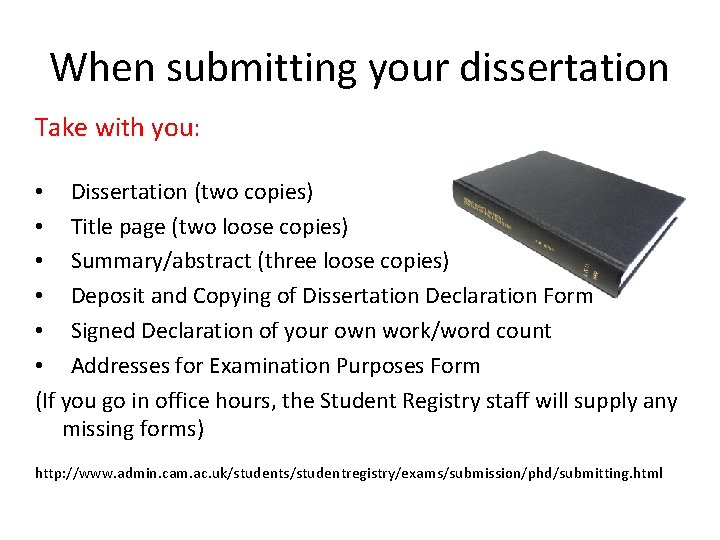 β’ Dissertation Presentation Day (some programmes only: see Appendix 1 for further details) β’ Dissertation Proposal Hand-in and final approval by academic supervisor . See Appendix 1 for dates which apply to your programme . β’ Dissertation hand-in, 4pm School Office MB . 1 .62 . See Appendix 1 for dates which apply to your programme . 2 .4 .