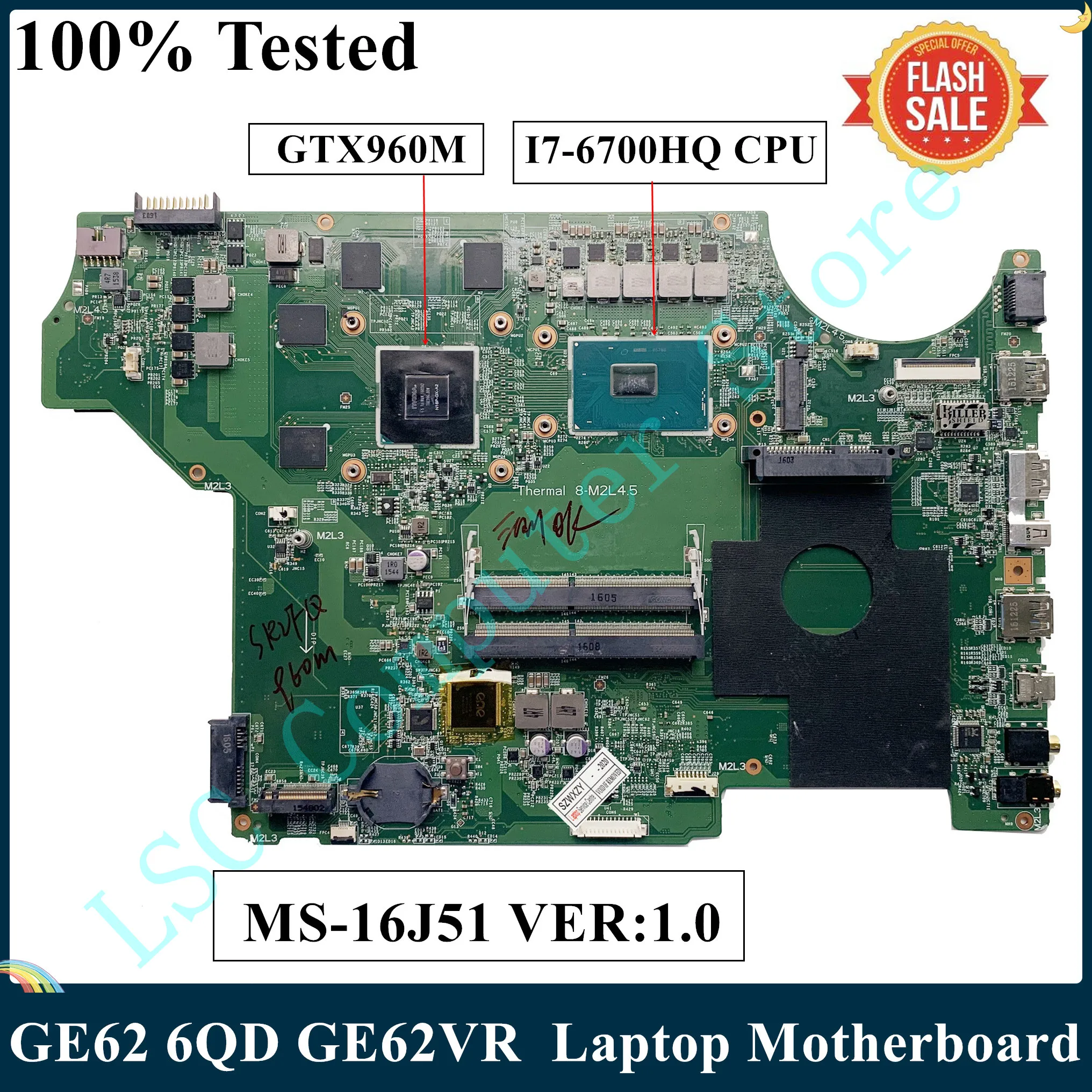 Материнская плата от ноутбука MSI GP72 6qf (ms1795, ms 1795, MS 16J51, MS16J51) . Подходит к ноутбукам серии GP62 GL62 GE62 GP72 GE72 GL72 . Процессор на плате Core i7 6700HQ, видео GeForce GTX960M(N16P-GX-A2) .