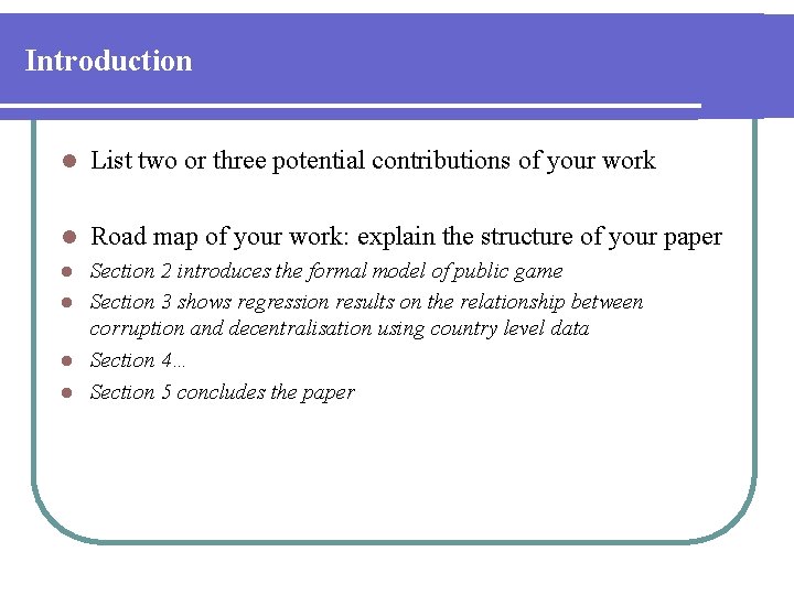the WISE website under Thesis Templates & Info), and the structure of the thesis . A possible (recommended) structure for the Introduction is as follows: Note that the names of the sections may be slightly different depending on the case . 1 .1 . Background/Context 1 .2 . Problem 1 .3 . Justification 1 .4 . Objectives & Hypotheses/Research Questions 1 .5 .