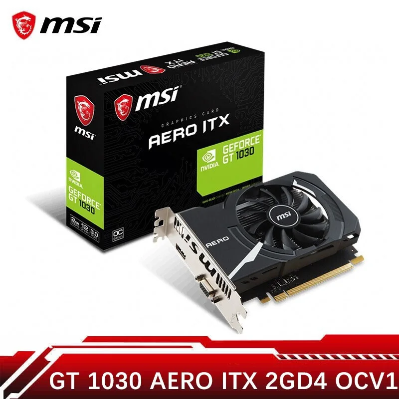 msi gt 1030 aero itx 2gd4 oc это компактная видеокарта с хорошей двуслотовой системой охлаждения с большим алюминиевым радиат . . . еще ором и 11-и лопастным вентилятором, которая легко справляется с отводом выделяющихся тепла .