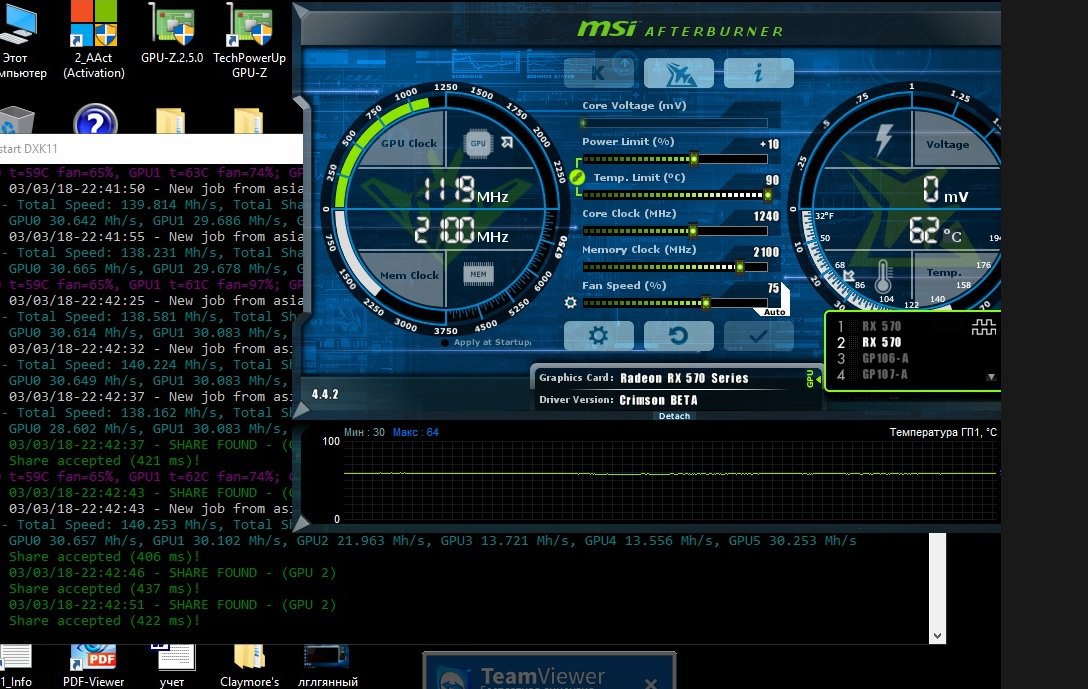 RX 570 8GB BIOS MoD 32 .2 MH/s MSI ARMOR Samsung Memory . . .