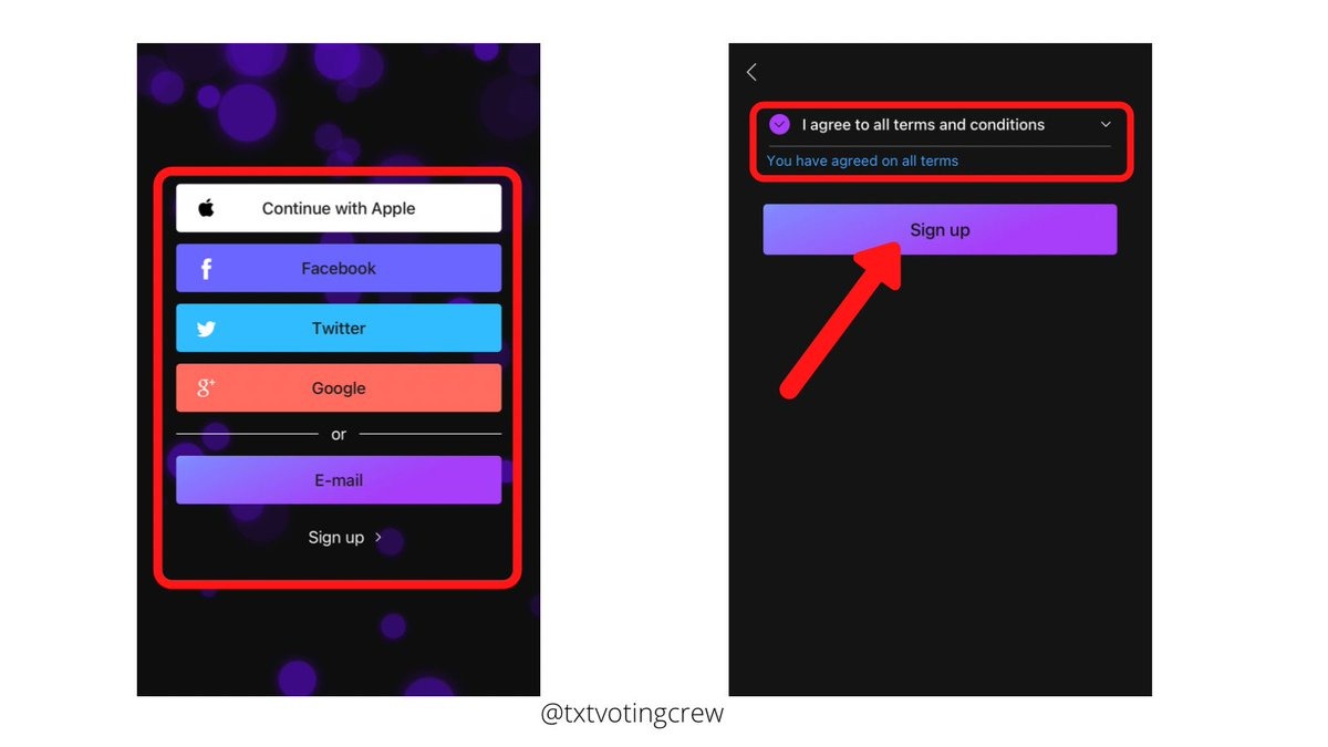 1) Install the Mubeat App and Log in using the social media platforms available in the photo below ⬇️