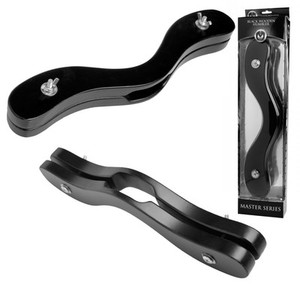 Humbler . Assume the position and get down on your knees! Want a testicle pillory that will humiliate, punish and torment? A humbler is designed to restrict movement of the slave and keep him on his hands and knees, begging for mercy . A testicle cuff is mounted in the centre of a bar which passes behind the thighs .