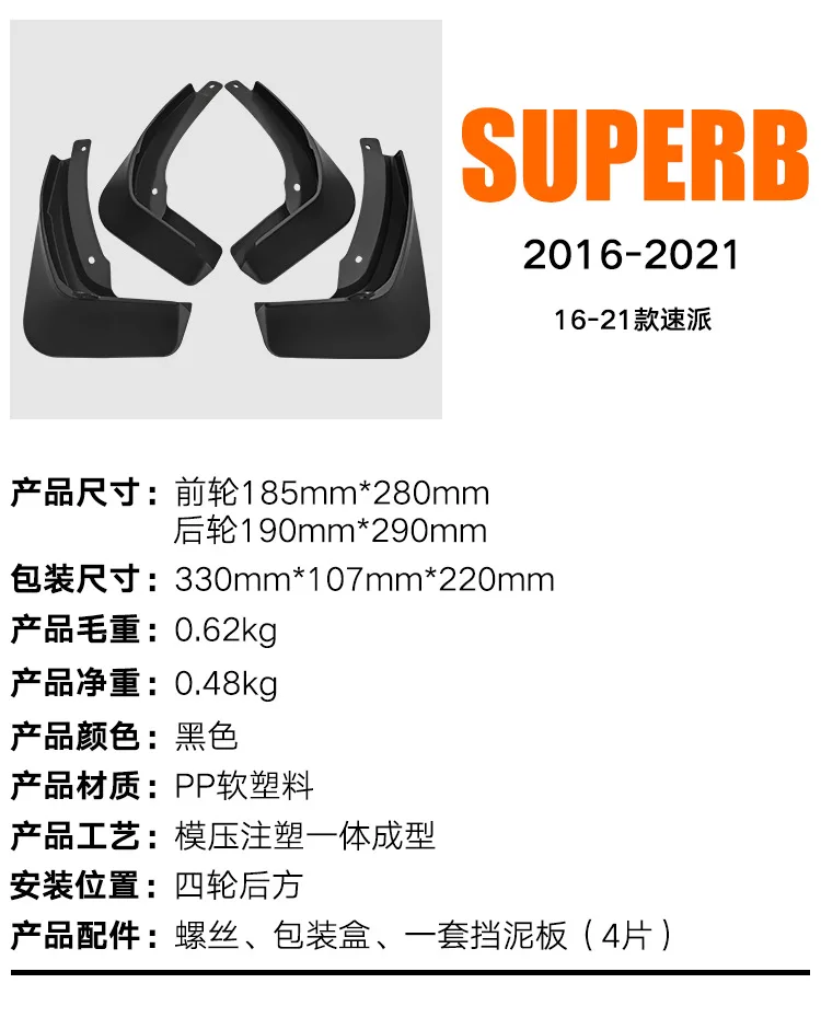 UopfExfpgHere you can buy MudFlaps FOR SKODA superb 2016-2021 (4PCS) Car Splash Guards Fender Set Parts Front Rear Mud Flaps Automotive Accessories with free delivery to your post office.